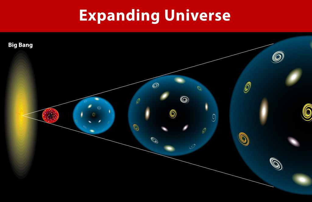 A expansão do universo é o fenômeno pelo qual as galáxias se afastam umas das outras em um espaço em constante crescimento, uma observação fundamental da cosmologia moderna. Essa expansão, prevista pela Teoria da Relatividade Geral de Einstein e confirmada por Edwin Hubble, implica que o universo começou em um estado muito denso e quente, conhecido como Big Bang, e tem se expandido desde então.