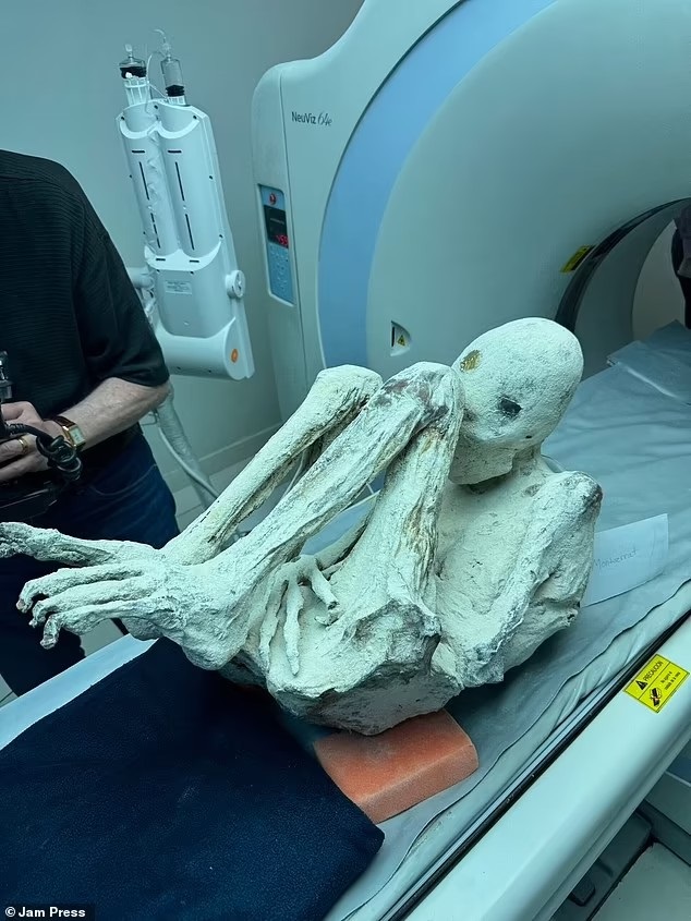 Maussan, cuja pesquisa gerou controvérsia por quase uma década, lançou a ideia de que as múmias poderiam ser “híbridos” alienígenas-humanos. Ele confirmou ao DailyMail.com que “análises mais aprofundadas estão sendo feitas”.