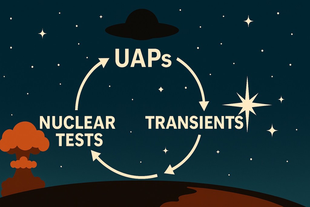 No artigo intitulado “Some Transients in the Palomar Observatory Sky Survey (POSS-I) May Be Associated with Above-Ground Nuclear Testing and Reports of Unidentified Anomalous Phenomena”, de 24 julho 2025, Villarroel e o psicometrista Stephen Bruehl examinaram 107.875 transientes registrados entre 1949 e 1957. Eles queriam saber se essas luzes fugazes eram mais comuns perto das datas de testes nucleares atmosféricos e de relatos de UAPs.