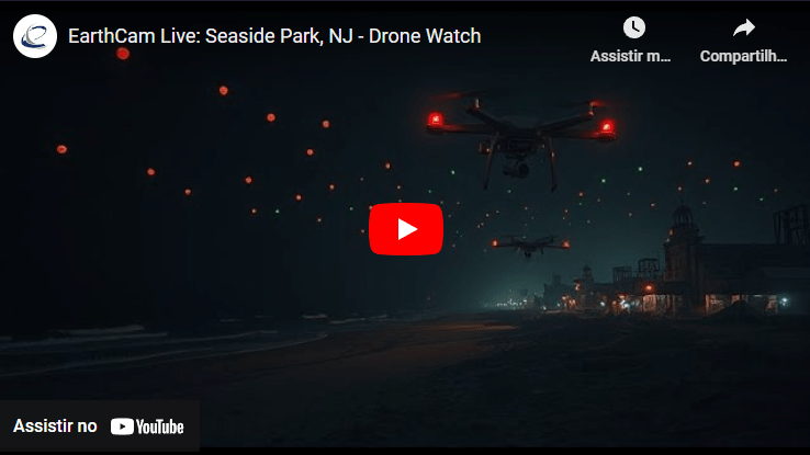 A lista apresenta transmissões ao vivo de diversas localizações, incluindo o calçadão de Ocean City, Nova Jersey, vistas do East River em Nova York, webcams nas Ilhas Canárias e transmissões da NASA.